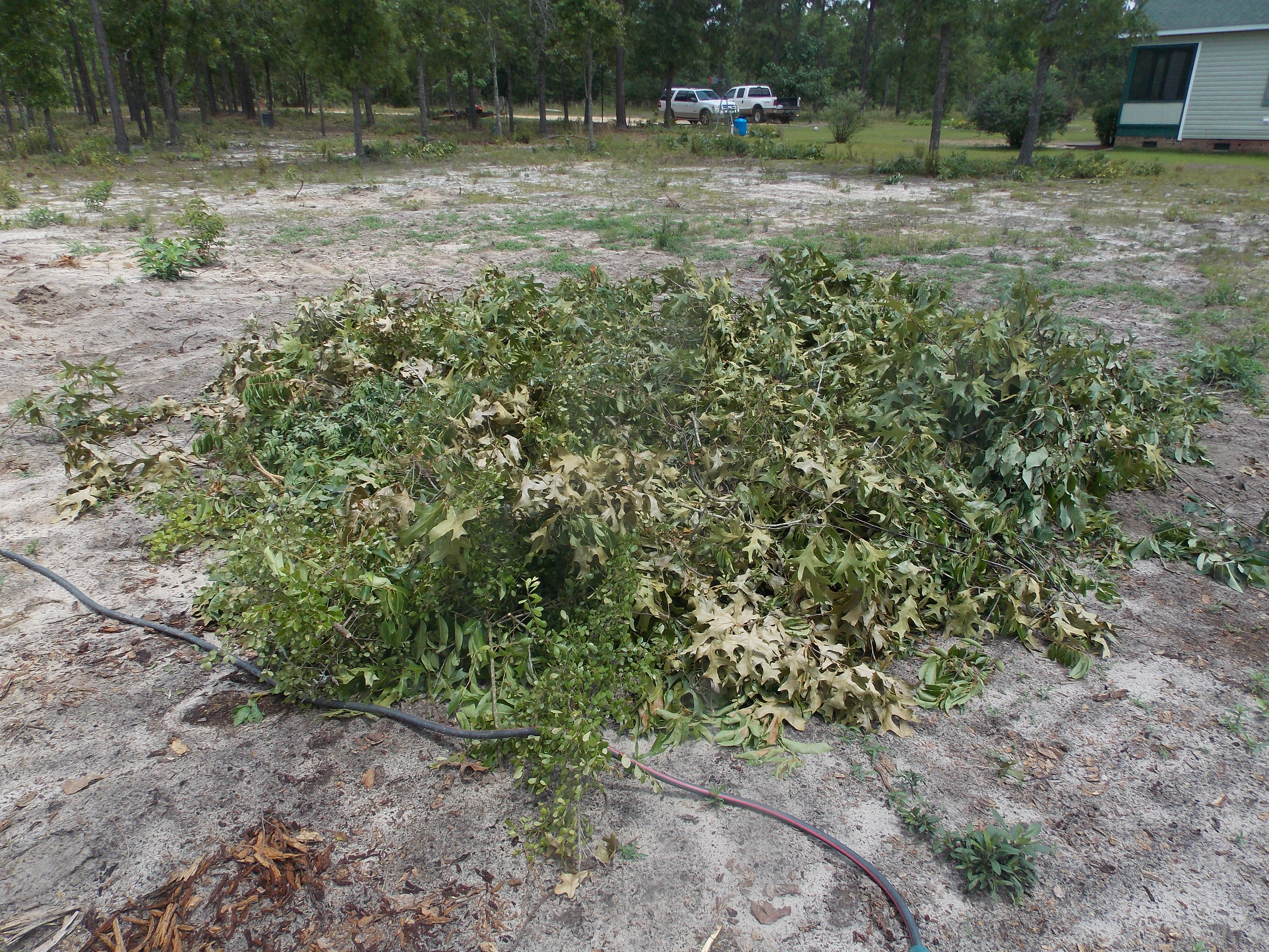 We began by working in this small area near our home. Although the density of low limbs and undergrowth is slight the proximity to our home and existing water lines made it ideal for us to begin with. There are areas of our farm that are much, much, more dense and require attention but this provides a nice area for learning. This area is predominately wooded in Turkey Oak (Quercus laevis) with some Laurel Oak (Quercus laurifolia) and Longleaf Pine (Pinus palustris). The most difficult part is keeping the branch sizes below the recommended 8mm for manual composting, and I must admit that may have been exceeded on some occasions. This is, after all, a learning experience.